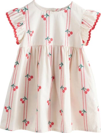 Your little one will look extrasweet in this cherry-print dress framed with flutter sleeves.
