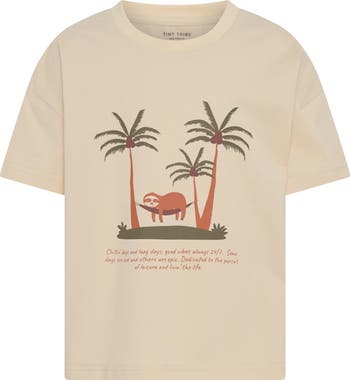 Some kids run, some kids lounge, this stretch-cotton T-shirt is for the lounge legends. It features soft, stretchy comfort with a reminder to stay cool, stay calm and maybe find some shade.