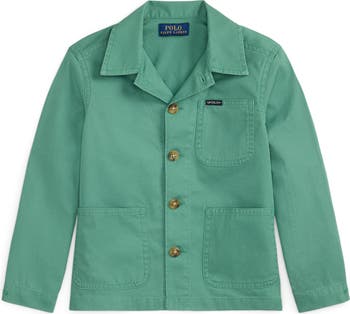 Roomy patch pockets bring function and authenticity to a chore coat made of crisp cotton poplin with a kid-size fit and an open collar to ensure the looks stays casual. Easy to wear as a sporty top layer or a lightweight jacket when the weather cools, it's the perfect go-to for comfort that can keep up with any busy day.