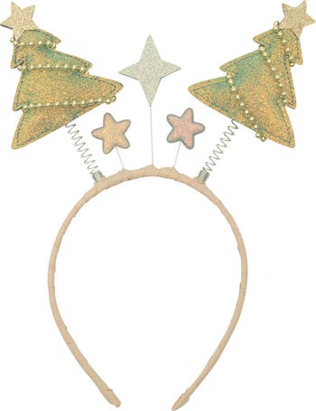 They'll love the delightfully festive style of this glittering headband topped with Christmas trees and bright stars, ensuring it will be a hit at every holiday party.