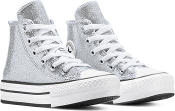 Covered in glitter and sized for kids, this kicked-up version of an iconic vintage sneak sets a shimmery upper atop a hefty platform to elevate the cool of every step. The glossy cupsole features two foxing stripes to emphasize the height, while the diamond-patterned tread grounds the design in sneakerhead-approved heritage detail.