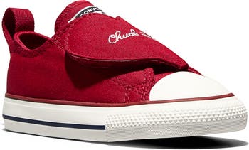 A sweet heart-shaped strap lends kid-approved charm to this classic canvas sneaker cushioned with soft foam.