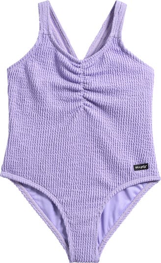Watch them splash and play in this adorable two-piece swimsuit made with shirred front and breezy cutout.