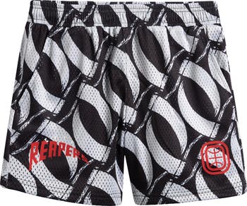 From the basketball court to the city streets, these printed mesh shorts bring bold energy and everyday comfort to your lineup. Made from breathable double-layered mesh, they’re built for movement on and off the hardwood. The allover scythe pattern gives them instant standout status, while official Overtime Elite City Reapers logos rep your squad loud and clear.