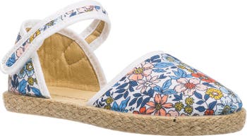 Crafted from colorful linen, this breezy espadrille is sized-down for kiddos and secured with an adjustable strap for easy-on/off.