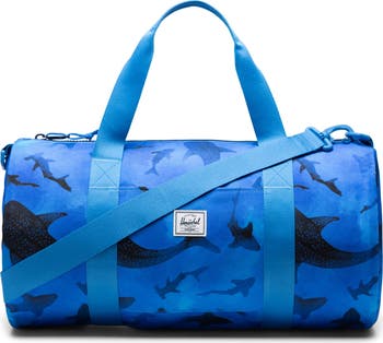 Sized perfectly for an extended weekend getaway, this playfully patterned duffle made from recycled materials features a handy exterior pocket and a roomy interior that can hold clothes, toys and sleepover essentials.