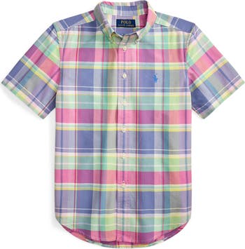 Breathable cotton oxford cloth patterned in a bright plaid makes an everyday favorite of a shirt that's sized for kids and finished with an iconic pony logo embroidered on the chest. It looks great smooth, rumpled, tucked or untucked to bring a prepster finish to any child's sense of style.