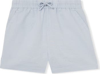 A gauzy, softly slubbed blend of cotton and linen makes a warm-weather favorite of shorts that are sized for kids with a relaxed fit and split hems for easy movement. A drawstring in the waist and handy pockets add essential function to the comfy, wear-everywhere style.