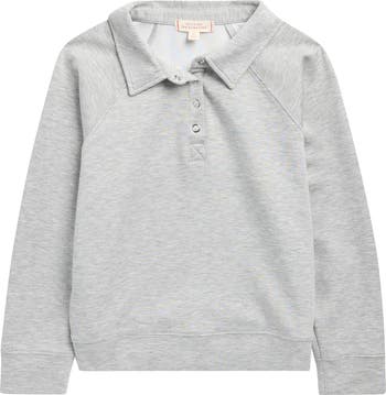 Roomy raglan sleeves frame a heathery scuba-knit sweatshirt fashioned in a preppy polo profile that goes with everything.