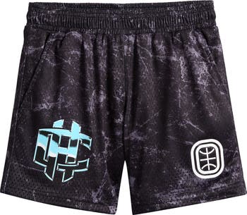 They'll look cool in these shorts patterned in an allover cracked-black-ice print while also keeping cool thanks to the ventilated double-layer mesh construction.