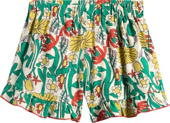 Your kiddo will exude natural cuteness in these organic-cotton shorts blooming with color and trimmed with frilly ruffle hems.
