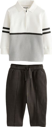 Your child will look sharp having lunch with Grandma at the country club in this comfy, all-cotton set pairing a textured colorblock polo with snazzy joggers made with stitched-down pleats.