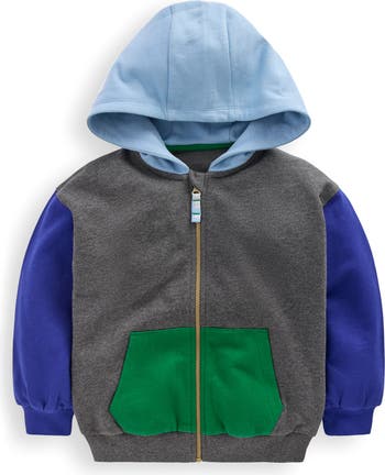 A kid-pleasing colorblock punches up a heathery cotton-fleece hoodie that's the perfect layer just about anytime.