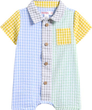 Decorative buttons line the placket of this precious little gingham polo romper made with signature magnetic closures that make diaper changes a breeze.