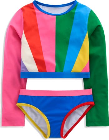 Your mini wave rider will be totally psyched for a colorful rashguard top that comes with matched swim bottoms.