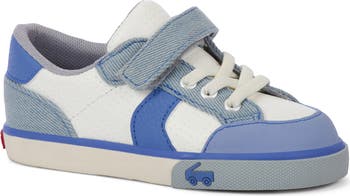 Sporty style meets playground-ready comfort and durability in this lightweight, flexible sneaker topped with an easy-on hook-and-loop strap. A breathable lining and roomy toe box encourage healthy foot development.