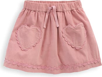 This soft cotton-corduroy skirt is accented with rickrack trim and a pair of heart pockets to bring a smile to your child.