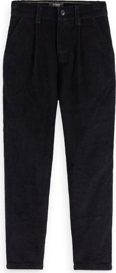 A contrast embroidery pops against the dark background of these tapered corduroy pants made from soft cotton that is kid approved.