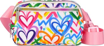 Vibrant hearts splash across a cute belt bag designed to delight your kiddo.