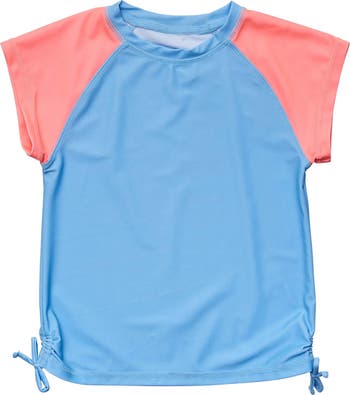 This colorblocked rashguard is framed by short raglan sleeves that offer them easy movement as they paddle off.