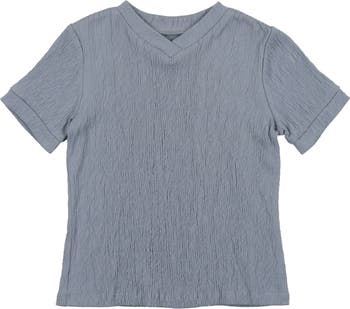 Cotton-blend gauze gives soft texture to this breathable V-neck T-shirt that's perfect for their next outing.