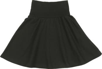 An elasticized waist and soft cotton blend bring play-ready comfort to a swingy skirt shaped in a classic A-line silhouette.