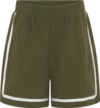 Bright, angular stripes frame the front of elastic-waist shorts made for kids who like to enjoy sunny days in the comfort of breathable cotton. The relaxed fit and lightweight feel make them a perfect choice for casual afternoons and warm weather.