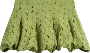 Flowers power the eyelet patterning of this cotton skirt finished with an undulating bubble hem.