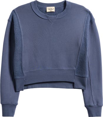Kids will love the soft feel and sporty look of this crewneck sweatshirt accented with contrast panels at the sides for a modern detail.