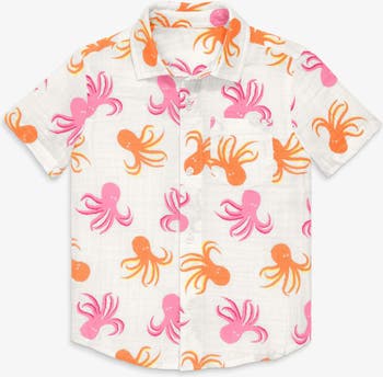 A lightweight, airy button down that’ll keep kids cool on sweltering days, so they can comfortably embrace the wild and untamed spirit of summer. Made from 100% cotton gauze for a soft and breezy feel. This shirt is pre-washed to minimize shrinkage and features a front pocket and functional buttons. Available in sizes 2-14.