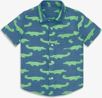 A lightweight, airy button down that’ll keep kids cool on sweltering days, so they can comfortably embrace the wild and untamed spirit of summer. Made from 100% cotton gauze for a soft and breezy feel. This shirt is pre-washed to minimize shrinkage and features a front pocket and functional buttons. Available in sizes 2-14.