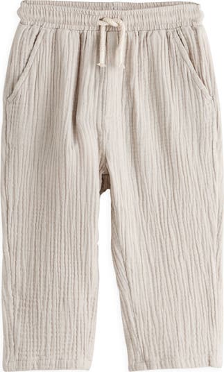 Breathable cotton gauze brings daylong comfort to breezy, kid-size pants topped with a stretchy drawstring waist.