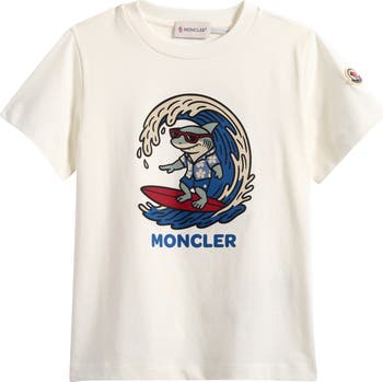A cool shark catches a wave on this kid-size graphic T-shirt done in the label's signature tricolor palette.