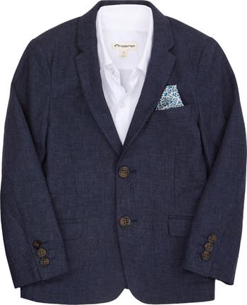 Your kiddo will look smart in this sport coat that's cut from a breezy blend of linen and cotton and finished with a print lining.