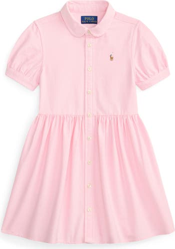 A Peter Pan collar and a petal pink hue sweeten a darling dress your kiddo will love.