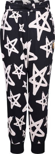 Bold star graphics cover these playful stretchy pants made from cotton French terry for ultimate comfort.