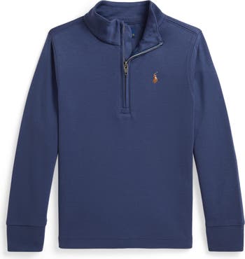 Soft and sporty, this all-cotton pullover features a comfy kid size with an adjustable front zipper and a tall collar for extended coverage against wind and cold. The iconic polo rider embroidered on the chest adds a prepster pop to any cool-weather look