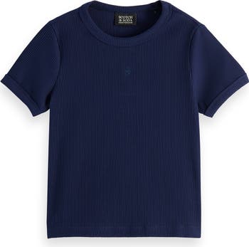 Mini ribs provide plenty of stretch in a cotton T-shirt your child can wear alone or layer all year long.