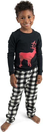 These kid's pajamas pair a snug-fit 100% cotton top with cozy, flame resistant fleece pants for warmth and comfort. Tagless design and machine-washable care make everyday wear easy. Great for winter nights, family photos, and gifting. These holiday pajamas also make perfect Christmas pajamas for festive celebrations and family traditions.