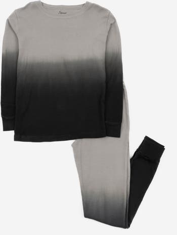 Leveret Kids Cotton Two-Piece Pajamas, Stripes, Solids & Tie Dye, Main, color, Tie Dye Gray