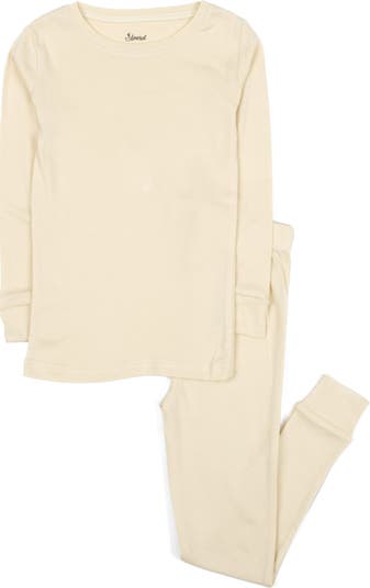 Leveret Kids Cotton Two-Piece Pajamas, Stripes, Solids & Tie Dye, Main, color, Off White