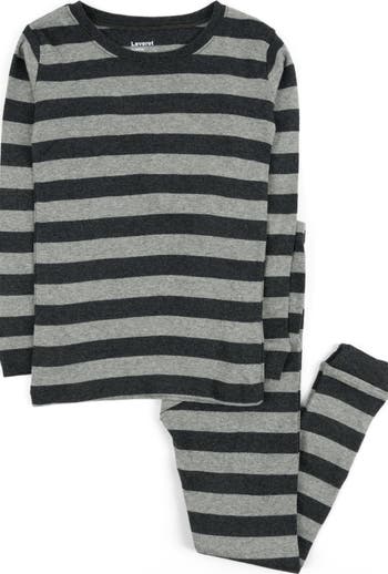 Leveret Kids Cotton Two-Piece Pajamas, Stripes, Solids & Tie Dye, Main, color, Striped Dark Gray & Light Gray