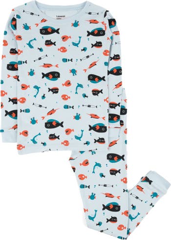 These Kids Cotton Two-Piece Pajamas are designed in a wide variety of animal and character prints, from foxes, lions, and ladybugs to sharks, knights, and pirates. Made from 100% cotton, they are soft, breathable, and snug-fitting to meet child sleepwear safety standards. The long-sleeve crewneck top features ribbed cuffs, while the bottoms have an elastic waistband for comfort. Tagless labels prevent irritation. Ideal as a holiday gift, for family photos, or everyday fun, these pajamas are sold separately so kids can collect multiple favorites. Machine washable for simple, everyday care.