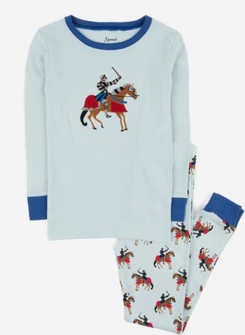 These Kids Cotton Two-Piece Pajamas are designed in a wide variety of animal and character prints, from foxes, lions, and ladybugs to sharks, knights, and pirates. Made from 100% cotton, they are soft, breathable, and snug-fitting to meet child sleepwear safety standards. The long-sleeve crewneck top features ribbed cuffs, while the bottoms have an elastic waistband for comfort. Tagless labels prevent irritation. Ideal as a holiday gift, for family photos, or everyday fun, these pajamas are sold separately so kids can collect multiple favorites. Machine washable for simple, everyday care.