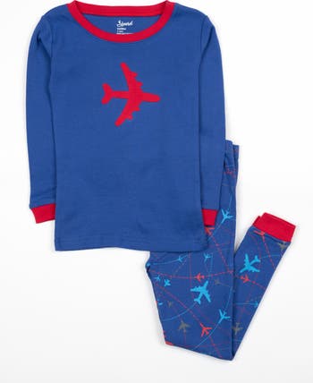 Leveret Kids Cotton Two-Piece Printed Pajamas, Vehicles & Machines, Main, color, Airplane