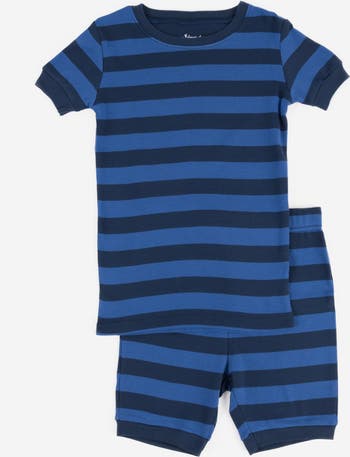These Kids Cotton Two-Piece Short Pajamas combine everyday comfort with versatile style in solid and striped prints. Made from 100% cotton, they are soft, breathable, and snug-fitting to meet child sleepwear safety standards. Each set includes a short-sleeve crewneck top with ribbed trim and elastic waistband shorts for comfort. Tagless labels provide irritation-free wear. Offered in a range of timeless solids and bold stripes, these pajamas are perfect for year-round wear and make a thoughtful holiday gift. Each style is sold separately. Machine washable for simple, everyday care.