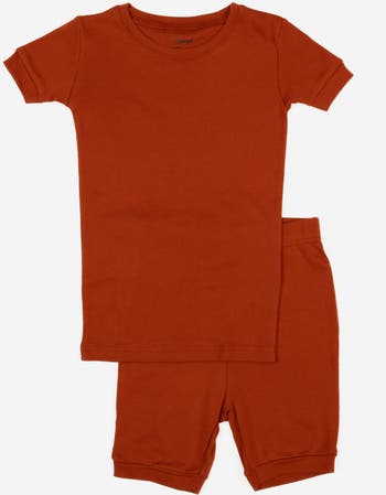 These Kids Cotton Two-Piece Short Pajamas combine everyday comfort with versatile style in solid and striped prints. Made from 100% cotton, they are soft, breathable, and snug-fitting to meet child sleepwear safety standards. Each set includes a short-sleeve crewneck top with ribbed trim and elastic waistband shorts for comfort. Tagless labels provide irritation-free wear. Offered in a range of timeless solids and bold stripes, these pajamas are perfect for year-round wear and make a thoughtful holiday gift. Each style is sold separately. Machine washable for simple, everyday care.