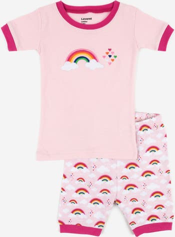 These Kids Cotton Two-Piece Short Pajamas feature playful animal and character prints that kids will love. Styles include dinosaurs, bumble bees, unicorns, ballerinas, tropical fish, and more, adding fun and personality to bedtime. Crafted from 100% cotton, these pajamas are soft, breathable, and snug-fitting to meet child sleepwear safety standards. The set includes a short-sleeve crewneck top with ribbed trim and elastic waistband shorts for comfort. Tagless labels ensure irritation-free wear. Perfect for holiday gifts or everyday fun, each style is sold separately. Machine washable for easy care.