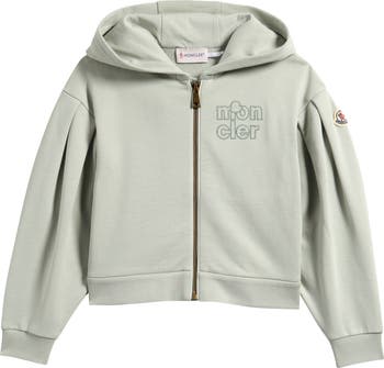 Crafted from soft cotton French terry, this zip-up cardigan is fashioned with deep pleats at the dropped shoulders and a playful Moncler logo embroidered at the chest.