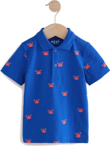 Contented crustaceans add a pinch of fun to this preppy cotton polo that keeps kids comfy from school days to vacays.